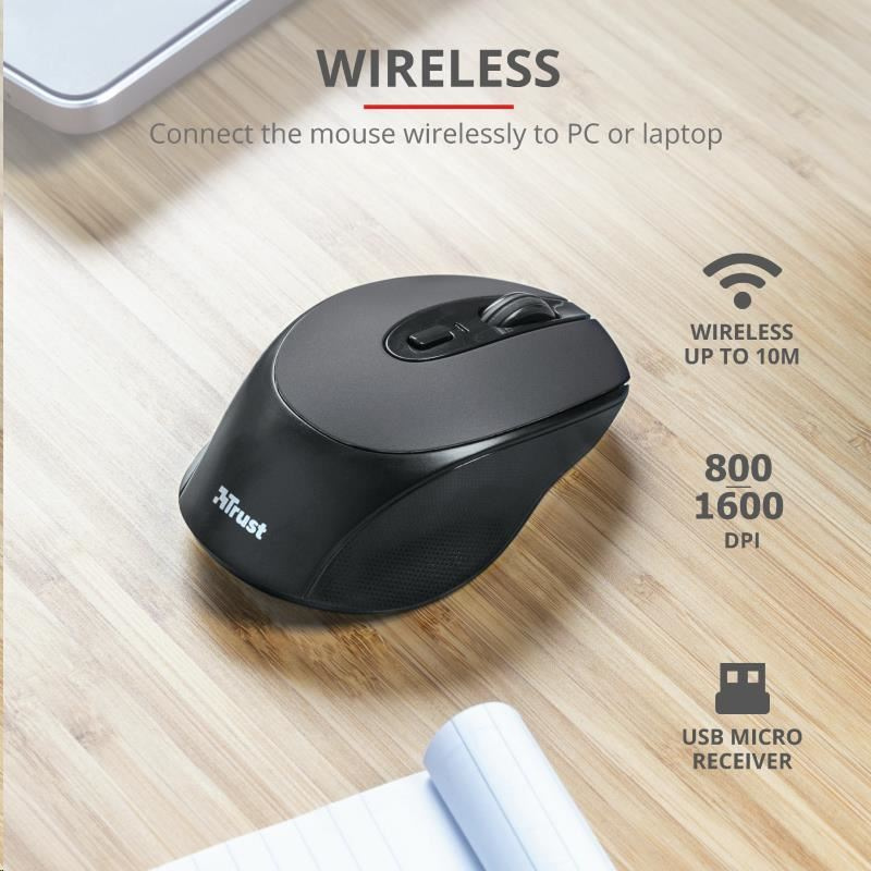 TRUST Zaya Nabíjateľná bezdrôtová myš - čierna