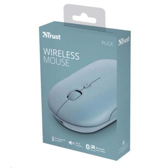 TRUST myš PUCK, bezdrôtová, USB, modrá, bluetooth