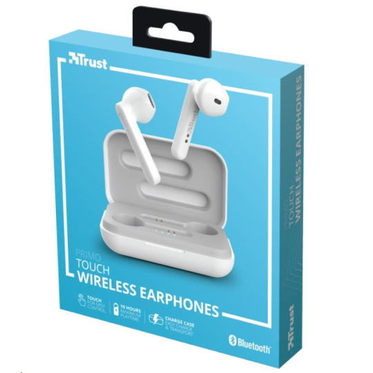 TRUST sluchátka Primo Touch Bluetooth Wireless Earphones - white