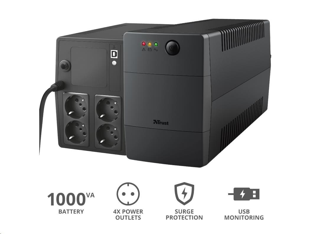 TRUST UPS Paxxon 1000VA UPS so 4 štandardnými zásuvkami