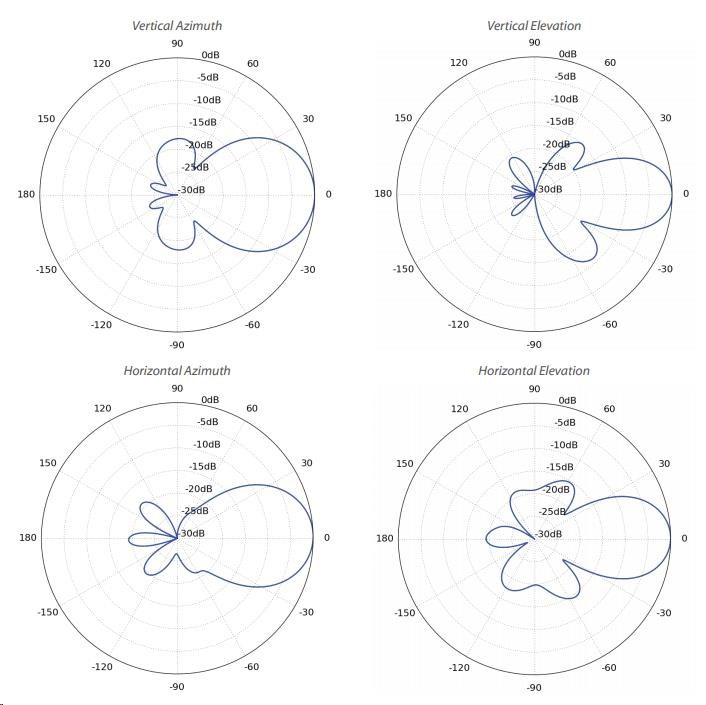 Šírka lúča 45° (H-pol) / 45° (V-pol) / 45° (elevácia)
