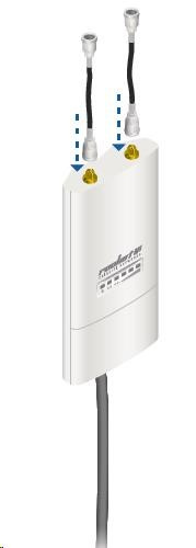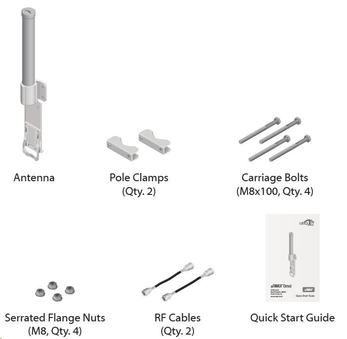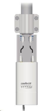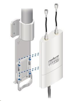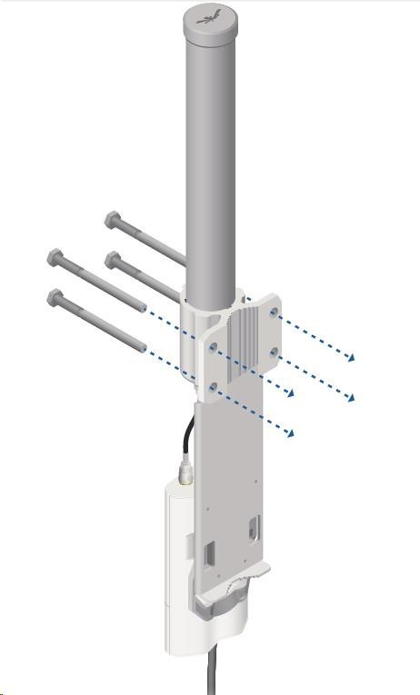 ide o robustné 10dbi všesmerové anténne riešenie pre prístupové body pracujúce v pásme 5 GHz a využívajúce štandard 802.11n v kombinácii s technológiou MIMO. Anténa má dva konektory RSMA typu žena. Súčasťou dodávky sú dva vodotesné pigtaily RSMA na pripojenie k jednotke Rocket M5, držiak pre túto jednotku a montážna súprava na stožiar, pozri. obr.
