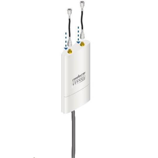 ide o robustné 13dbi všesmerové anténne riešenie pre prístupové body pracujúce v pásme 5 GHz a využívajúce štandard 802.11n v kombinácii s technológiou MIMO. Anténa má dva konektory RSMA typu žena. Súčasťou dodávky sú dva vodotesné pigtaily RSMA na pripojenie k jednotke Rocket M5, držiak pre túto jednotku a montážna súprava na stožiar, pozri. obr.
