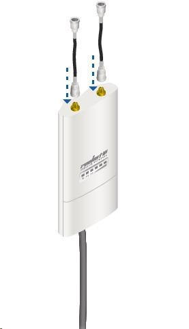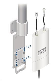ide o robustné 13dbi všesmerové anténne riešenie pre prístupové body pracujúce v pásme 5 GHz a využívajúce štandard 802.11n v kombinácii s technológiou MIMO. Anténa má dva konektory RSMA typu žena. Súčasťou dodávky sú dva vodotesné pigtaily RSMA na pripojenie k jednotke Rocket M5, držiak pre túto jednotku a montážna súprava na stožiar, pozri. obr.