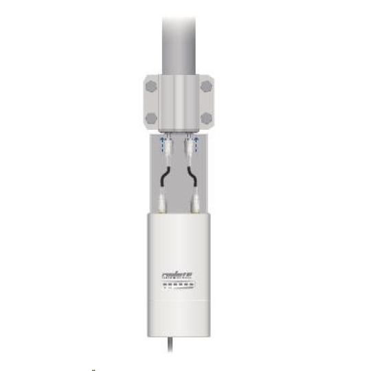 ide o robustné 13dbi všesmerové anténne riešenie pre prístupové body pracujúce v pásme 5 GHz a využívajúce štandard 802.11n v kombinácii s technológiou MIMO. Anténa má dva konektory RSMA typu žena. Súčasťou dodávky sú dva vodotesné pigtaily RSMA na pripojenie k jednotke Rocket M5, držiak pre túto jednotku a montážna súprava na stožiar, pozri. obr.