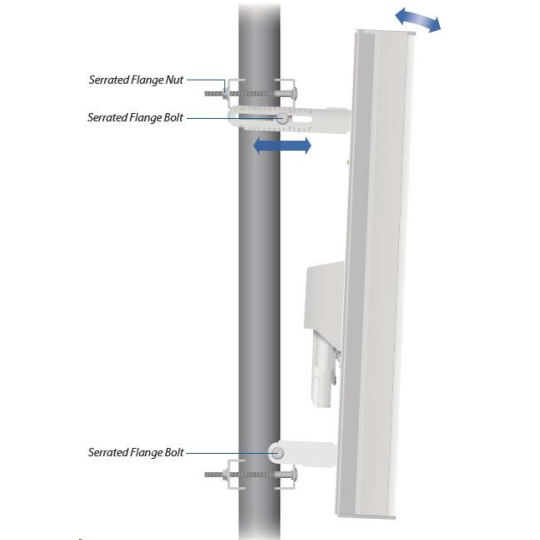 Montáž Univerzálny držiak na stĺp, držiak na raketu a RF prepojky odolné voči poveternostným vplyvom sú súčasťou dodávky