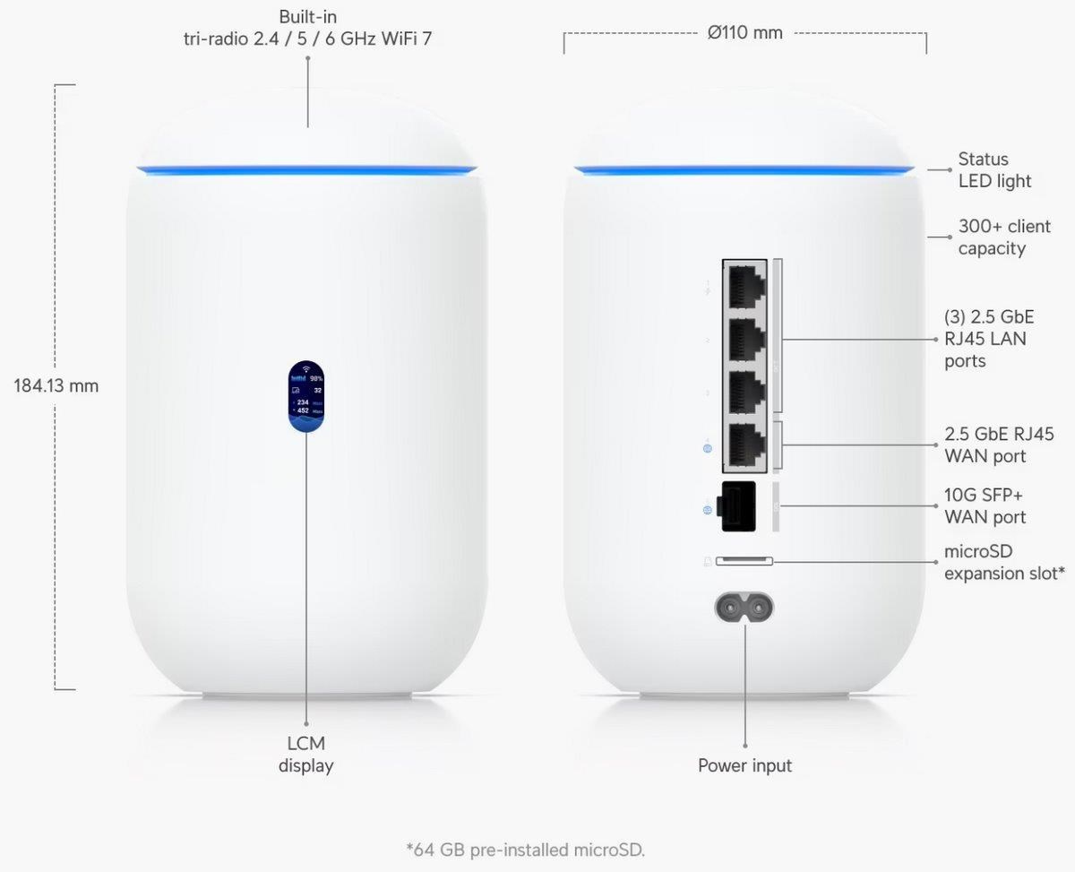 Popis produktu UniFi Dream Router 7 od Ubiquiti je řešení sítě vše v jednom pro domácnosti a malé kanceláře. Jedná se o výkonné zařízení se 4-jádrovým CPU, 3 GB RAM, které kombinuje Router, WiFi 7 AP, 3-portový 2.5G switch s možností 802.3af PoE na jednom portu. Pro připojení do sítě disponuje 2.5G WAN portem a 10G SFP... viac