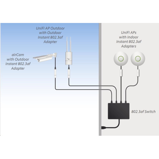 pomocou tohto konvertora je možné napájať jednotky UBNT pomocou aktívneho PoE prepínača podľa 802.3af (48 V). Prevodník komunikuje so spínačom podľa 802.3af a výstup už pasívne PoE, v tomto prípade 18V/0,7A. Môže sa používať so všetkými jednotkami Ubiquity (je kompatibilný aj s routerboardmi Mikrotik).