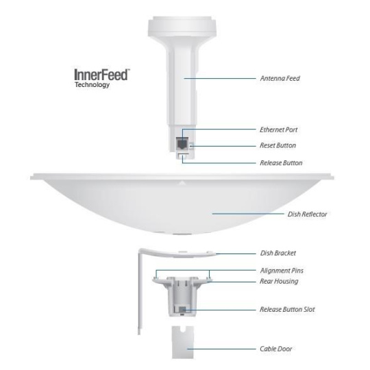 Popis produktu PowerBeam vychází z dřívější velmi úspěšné řady produktů NanoBridge. Nově obsahuje výkonější hardware a chytřejší konstrukci. Konstrukce byla maximálně zjednodušena, instalace v terénu je nyní rychlejší a pohodlnější, pro zajímavost bych zmínil tlačítko pro uvolnění hlavní jednotky (zářiče) což byl problém u starší generace. Uvnitř PowerBeamu se nachází výkonný MIPS procesor Atheros 74KC s frekvencí 560MHz, kterému sekunduje 64MB operační paměti typu DDR2 a 8MB Flash paměť. Síťový port podporuje 10/100 Ethernet a lze po něm jednotku napájet pasivním PoE 24V/0,5A (aktivní PoE dle 802.3af není podporováno). Teoretická maximální propustnost jednotky je 300Mbit (MCS15, 802.11n, 2x2 MIMO, při šířce kanálu 40MHz). InnerFeed technologie InnerFeed™ technologie integruje rádiovou část do zářiče od antény čímž odpadá potenciální ztráta na RF kabelu. Ekcelentní směrovost Tvar a velikost PowerBeamu nabízí nejvyšší možný zisk antény. Navíc díky ekcelentní směrovosti Vám bude PoweBeam skvěle pracovat i ve více zarušeném prostředí. airMAX Největší výhodou jakéhokoliv airMAX zařízení je vedle vysoké přenosové rychlosti díky standardu 802.11n využití časového multiplexu TDMA. Protokol TDMA airMAX umožňuje vynikající škálovatelnost a vysokou propustnost při zachování nízkých latencí v PtMP sítích. Obsah balení • Zařízení • PoE napájecí zdroj • Napájecí kabel • Parabola • Montážní kit k přichycení na stožár • Plastová část pro držení zářiče Technické parametry Bezdrátové vlastnosti Bezdrátové frekvence:2.4 GHz WiFi standardy:802.11b/g, airMAX, 802.11n Přenosová rychlost - 2.4GHz [Mb/s]:300 Vysílací výkon 2.4GHz [dBm]:28 Šifrování:WPA2 AES 2.4GHz MIMO:2 x 2 Typ antény:Vestavěná Počet vestavěných antén:2 Zisk antény [dBi]:18 Konektory a rozhraní Rychlost LAN:(1) 10/100Mbps Napájení Napájení přes PoE:24V DC Typy PoE:PoE-In (pouze) Max. spotřeba energie [W]:6 Fyzické charakteristiky Použití:Venkovní Tlačítka:Reset Provozní teplota [°C]:-40 až 70 Hmotnost [g]:1795 Šířka [mm]:400 Výška [mm]:400 Hloubka [mm]:289 Hardware CPU:MIPS 74Kc Frekvence CPU [MHz]:560 RAM [MB]:64 Software Operační mód:Klient, Repeater, AP Router, Access Point, Klient Router (wisp) Podpora IPv6:Transparentní (režim bridge) Výchozí IP adresa:192.168.1.20 Výchozí jméno a heslo:ubnt / ubnt.