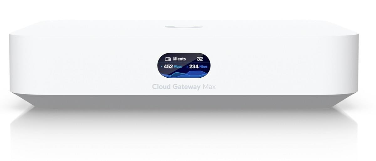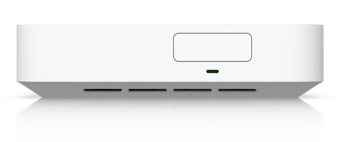 UCG-Max je všestranné zařízení ze série UniFi Cloud Gateway. Router disponuje (1) WAN 1/2.5Gbps portem a (4) LAN 1/2.5Gbps porty (1 s možností konfigurace LAN/WAN). Kompaktní, ale výkonné provedení tak podporuje funkci multi-WAN včetně možnosti load balancing, nechybí podpora IDS/IPS. Router má implementovanou podporu různých typů VPN, včetně site-to-site VPN. Pomocí integrované aplikace UniFi Network dokážete spravovat až 30+ UniFi zařízení a obsloužit až 300+ připojených klientských zařízení. Video záznam z kamer se ukládá přímo na vestavěný 512 GB NVMe SSD, který lze vyměnit za disk s vyšší kapacitou. Nechybí stavový displej o velikosti 0,96". Napájení je řešeno prostřednictvím USB-C konektoru, napájecí adaptér je součástí balení. Klíčové vlastnosti • 1Gbps routing s podporou IDS/IPS • Integrovaná aplikace UniFi Network • Multi-WAN + load balancing • 0,96" LCM displej • Napájení USB-C Obsah balení • Zařízení • Patch kabel • Napájecí adaptér USB-C (5V/5A) Technické parametry Konektory a rozhraní Rychlosti WAN:(1) 100/1000/2500Mbps Možnost více WAN:Ano Rychlost LAN:(4) 10/100/1000/2500Mbps Gigabit LAN:Ano Napájení Typ napájení:USB-C Max. spotřeba energie [W]:16 Napájení přes konektor/svorkovnici:5V / 5A Fyzické charakteristiky Provedení:Desktop Šasi:Plastové Tlačítka:Reset Provozní teplota [°C]:-10 až 40 Šířka [mm]:127 Výška [mm]:30 Hloubka [mm]:142 Hardware RAM [MB]:4096 Obecné Propustnost NAT [Mb/s]:1000 Software Podporované VPN:L2TP, IPSec, OpenVPN, WireGuard Management:UniFi Network Podpora IPv6:Ano.