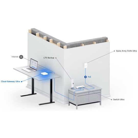 Popis produktu UCG-Ultra je všestranné zařízení ze série UniFi Cloud Gateway. Router disponuje (1) WAN 1/2.5Gbps portem a (4) LAN 1Gbps porty (1 s možností konfigurace LAN/WAN). Kompaktní, ale výkonné provedení tak podporuje funkci multi-WAN včetně možnosti load balancing, nechybí podpora IDS/IPS. Router má implementovanou podporu různých typů VPN, včetně site-to-site VPN. Pomocí integrované aplikace UniFi Network dokážete spravovat až 30+ UniFi zařízení a obsloužit až 300+ připojených klientských zařízení. Nechybí stavový displej o velikosti 0,96". Napájení je řešeno prostřednictvím USB-C konektoru, napájecí adaptér je součástí balení. Klíčové vlastnosti • 1Gbps routing s podporou IDS/IPS • Integrovaná aplikace UniFi Network • Multi-WAN + load balancing • 0,96" LCM displej • Napájení USB-C Obsah balení • Zařízení • Patch kabel • Napájecí adaptér USB-C (5V/3A) • Technické parametry • Konektory a rozhraní • Rychlosti WAN:(1) 100/1000/2500Mbps • Možnost více WAN:Ano • Rychlost LAN:(3) 10/100/1000Mbps + (1) 10/100/1000Mbps LAN/WAN • Gigabit LAN:Ano • Napájení • Typ napájení:USB-C • Max. spotřeba energie [W]:6,2 • Napájení přes konektor/svorkovnici:5V / 3A • Fyzické charakteristiky • Provedení:Desktop • Šasi:Plastové • Tlačítka:Reset • Provozní teplota [°C]:-10 až 40 • Šířka [mm]:142 • Výška [mm]:30 • Hloubka [mm]:128 • Hardware • RAM [MB]:3072 • Obecné • Propustnost NAT [Mb/s]:1000 • Software • Podporované VPN:L2TP, IPSec, OpenVPN, WireGuard • Management:UniFi controller • Podpora IPv6:Ano.