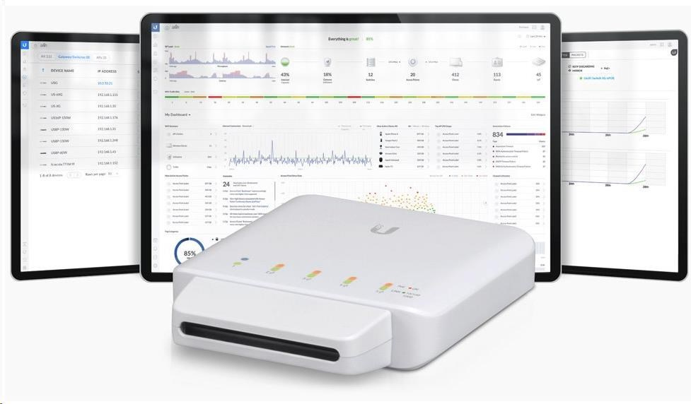 Jedna inštancia kontroléra UniFi spustená v cloude môže spravovať viacero sietí UniFi v rámci centralizovaného rozhrania. Každá sieť je logicky oddelená a má vlastné monitorovanie siete, konfiguráciu, mapy, štatistiky a účty správcu.