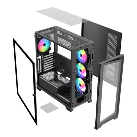 • Skriňa ATX z tvrdeného skla s 360° panoramatickým výhľadom