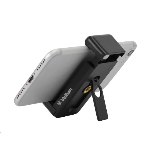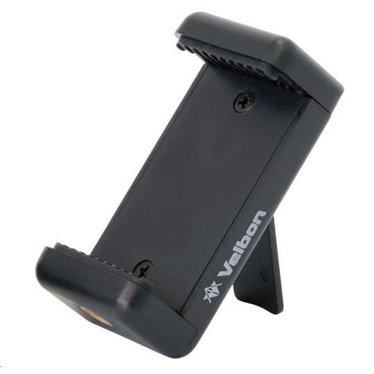 Malý flexibilný statív od spoločnosti Velbon so zloženou dĺžkou 43,5 cm a maximálnou dĺžkou 123 cm. Statív sa dodáva s namontovanou otočnou a naklápacou hlavou a držiakom na smartfón. Hlava umožňuje plynulé otáčanie o 360° a manipuláciu s ňou, pričom sa dá ľahko prepnúť do režimu na výšku.