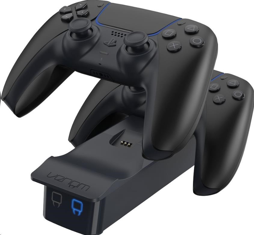 Naša štýlová nabíjacia stanica je esteticky navrhnutá tak, aby ladila s tvojou konzolou PS5 a ovládačmi DUALSENSE™, a ponúka rýchle a efektívne nabíjanie až 2 ovládačov PS5 súčasne.