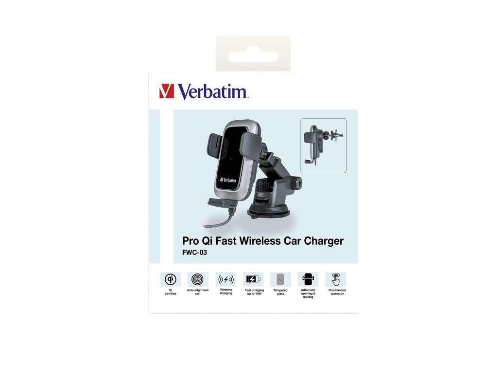 VERBATIM Držák do Auta Bezdrátová rychlonabíječka Pro Qi 15W FWC-03