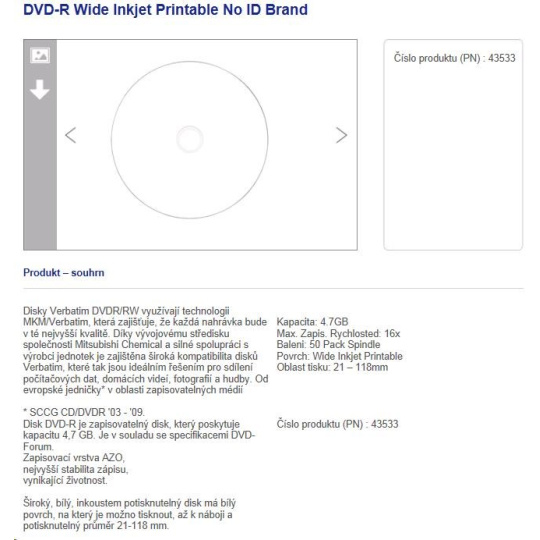Disky DVD-R Wide Inkjet Printable No ID Značka