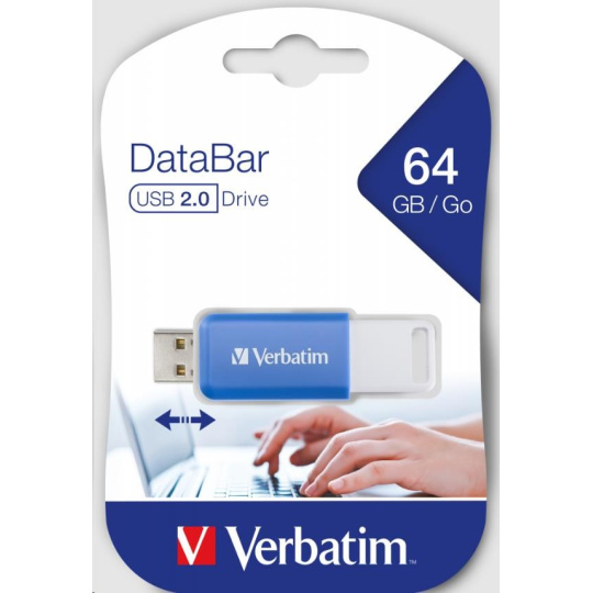 VERBATIM Flash Disk 64GB DataBar USB 2.0 Disk, modrý