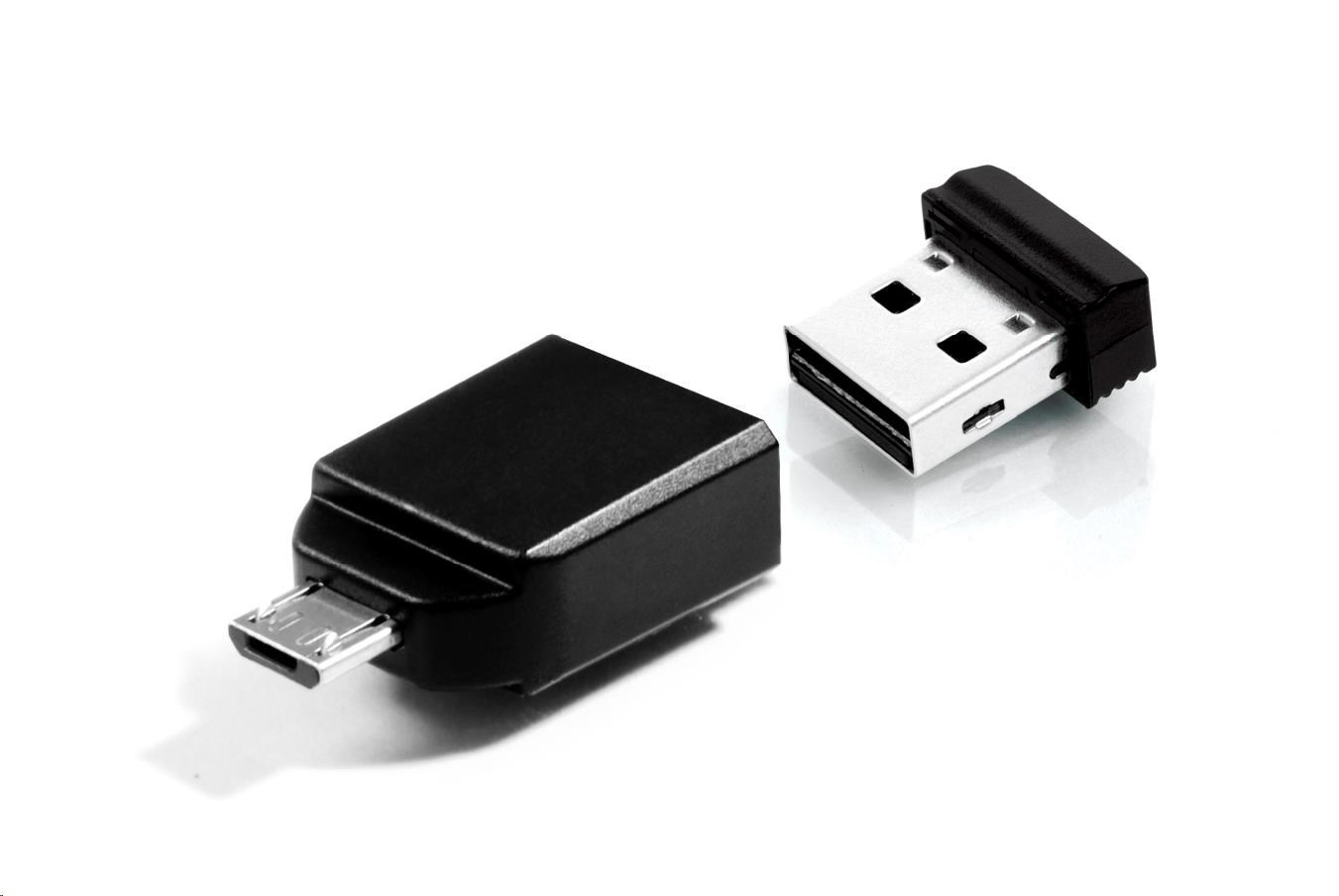 VERBATIM Flash disk 16 GB Store 'n' Stay NANO + adaptér micro USB OTG, USB 2.0, čierna