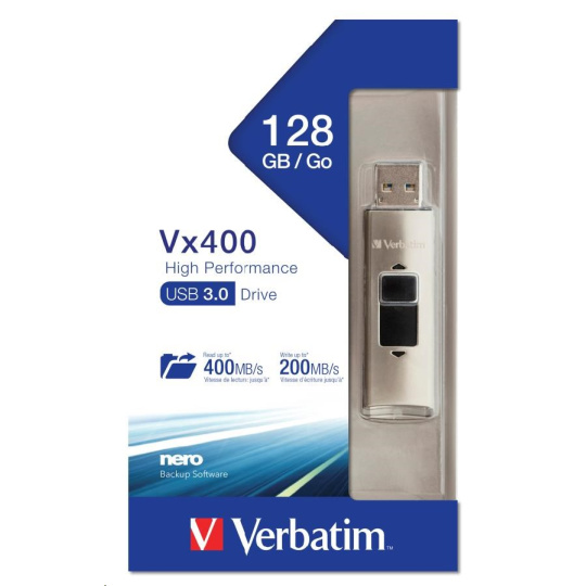VERBATIM Flash disk 128 GB Store 'n' Go, SSD Vx400, USB 3.0, strieborná