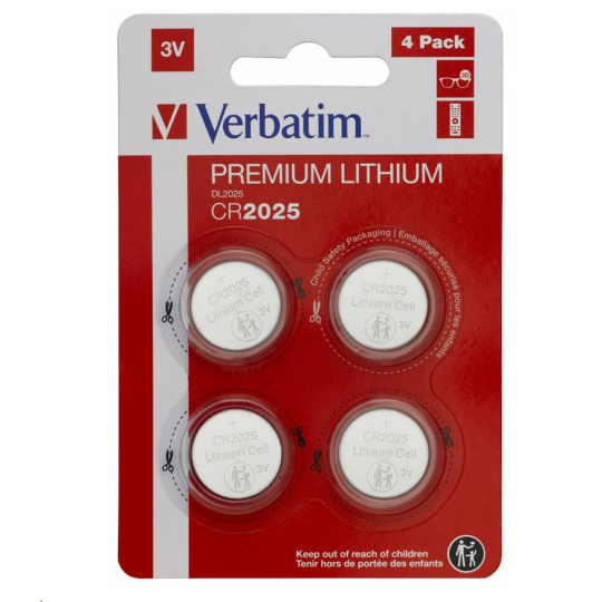VERBATIM Lithium baterie CR2025 3V 4 Pack