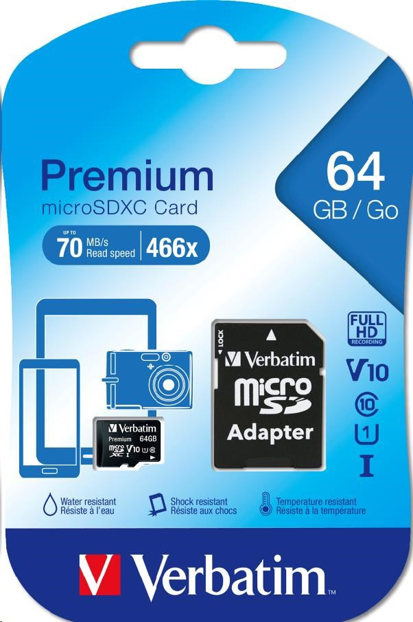 VERBATIM MicroSDXC karta 64GB Premium, U1 + adaptér