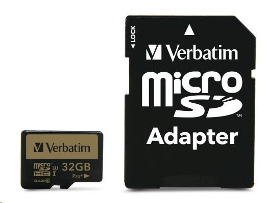 Karta VERBATIM MicroSDHC 32GB PRO+ Class 10, UHS 1 (R:90/W:80 MB/s)