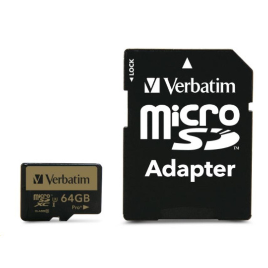 Karta VERBATIM MicroSDXC 64GB PRO+ Class 10, UHS 1 (R:90/W:80 MB/s)
