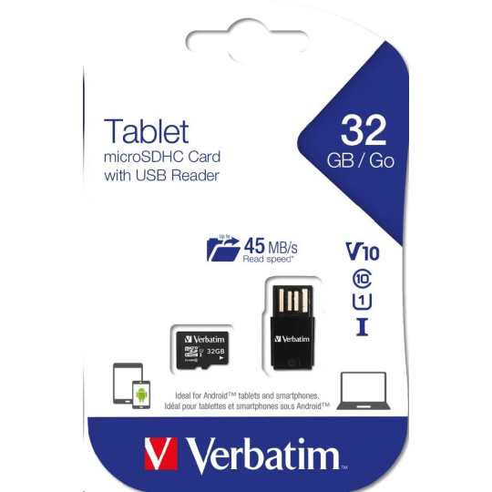 VERBATIM Tablet microSDHC C10/U1 s USB čítačkou 32GB (R:45MB/s, W:10MB/s)