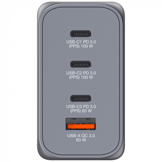 | Výkon | USB-C1 Max 100W USB-C2 Max 100W USB-C3 Max 65W USB-A Max 60W Spolu Max 189W |