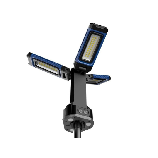 | Režim ovládania: | Rozložte pracovné svetlo a postavte ho. Stlačením vypínača ON/OFF aktivujete svetlo a následne jednotlivými stlačeniami prepínate medzi jednotlivými svetelnými režimami až do prípustného vypnutia. Stlačením vypínača ON/OFF (ikona slnka/ikona svetla) upravujete farbu svetla. Hlava svetla môže byť podľa potreby odmontovaná. |