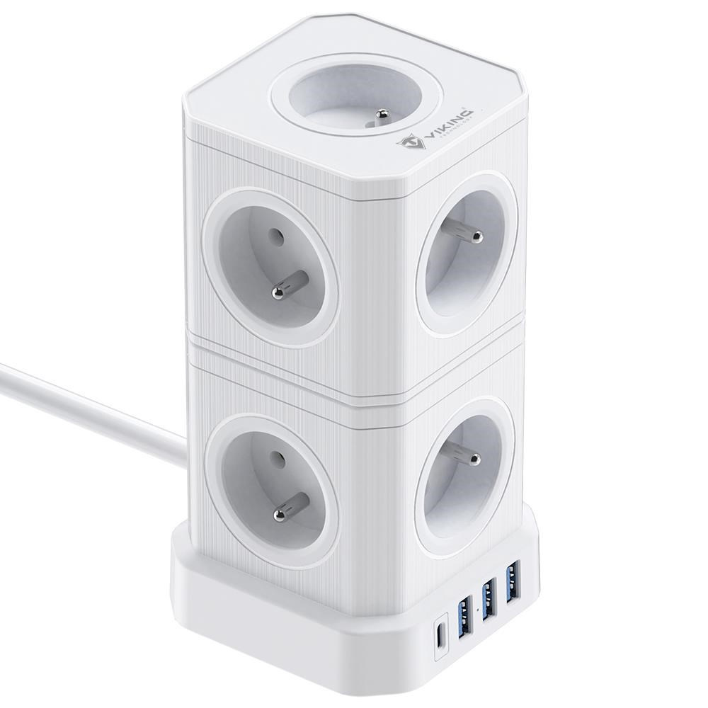Predstavujeme Viking ACT94 - revolučnú elektrickú zásuvku, ktorá rozširuje štandardnú zásuvku o ďalších 9 x AC 230V, 3 x USB-A a 1x USB-C výstupy.