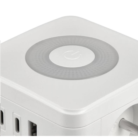 Viking síťový adaptér YC23L, 2x 230 V, 1x USB-A, 2x USB-C, dotykové světlo, délka 1,4 m, bílá