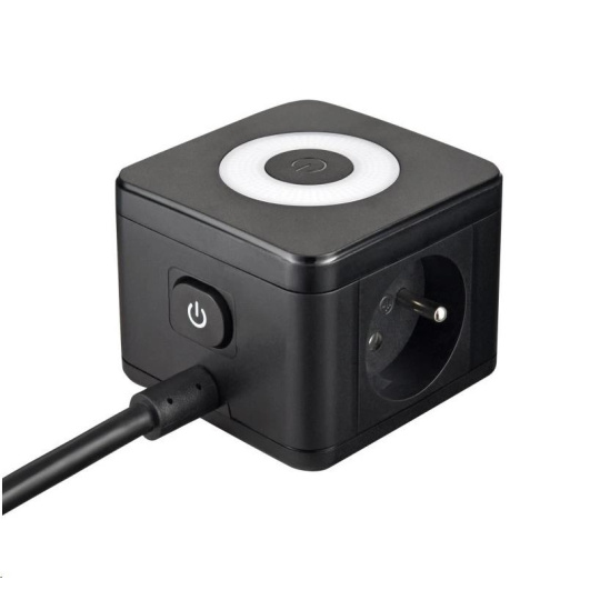 Viking síťový adaptér YC23L, 2x 230 V, 1x USB-A, 2x USB-C, dotykové světlo, délka 1,4 m, černá