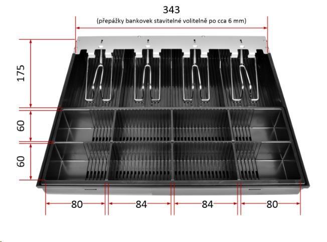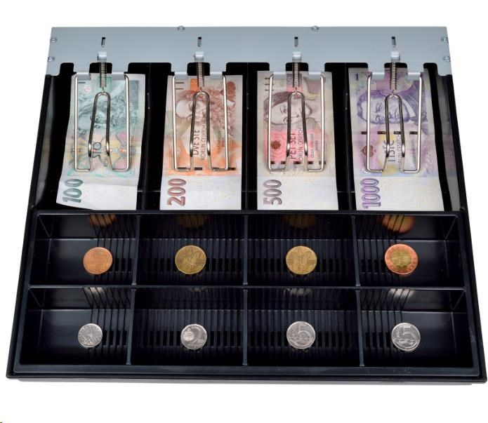 | Prihrádky | 4× na bankovky 8× na mince - vyberateľný mincovník |