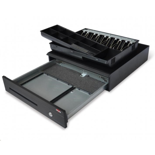 Pokladničná zásuvka Virtuos C425C, kovová. držiaky, 5-9V, čierne, bez kábla