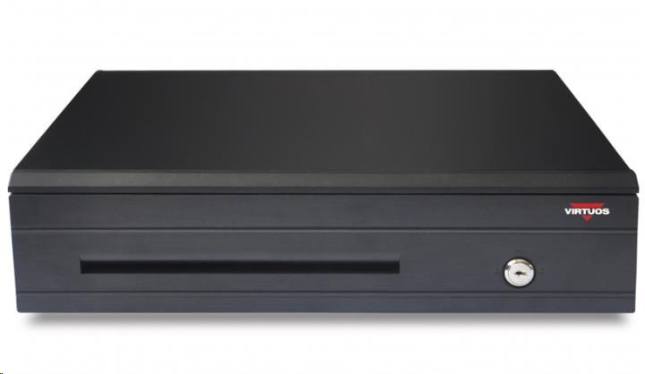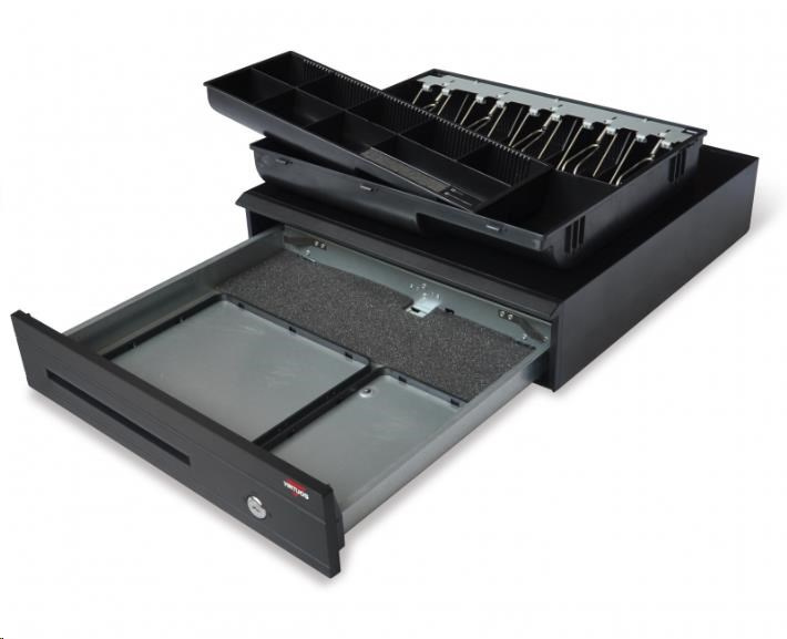 Pokladničná zásuvka Virtuos C425C, s 24V káblom, kovová. držiaky, 9-24V, čierne