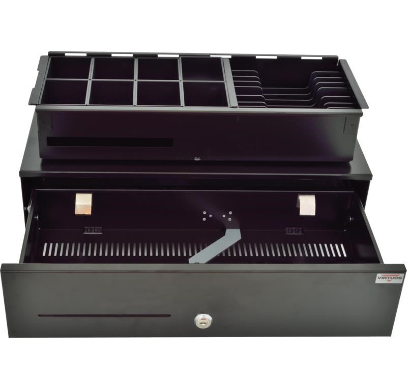 Virtuos pokladní zásuvka SK-500CB s kabelem, kov. pořadač 8/8, 9-24V, černá