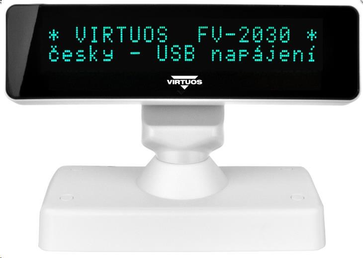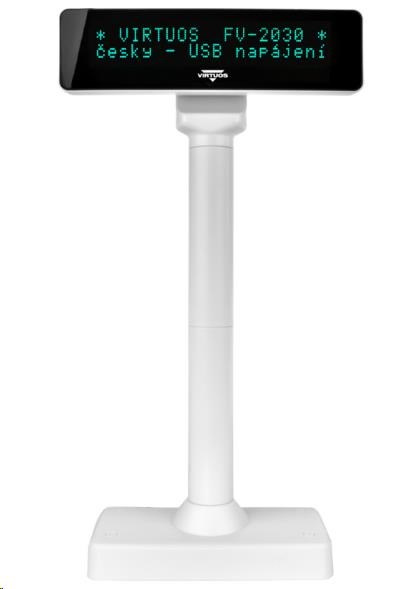 Virtuos VFD zákaznícky displej Virtuos FV-2030W 2x20 9mm, USB, biely