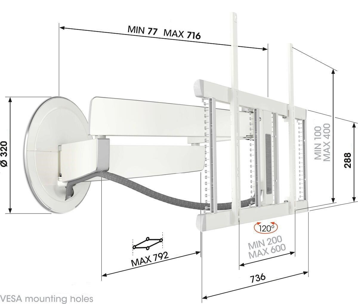 Vogel's Elektrický, TV 40-77", vytažení od stěny 77-715 mm, natočení ±60°, nosnost 35 kg, VESA do 600x400