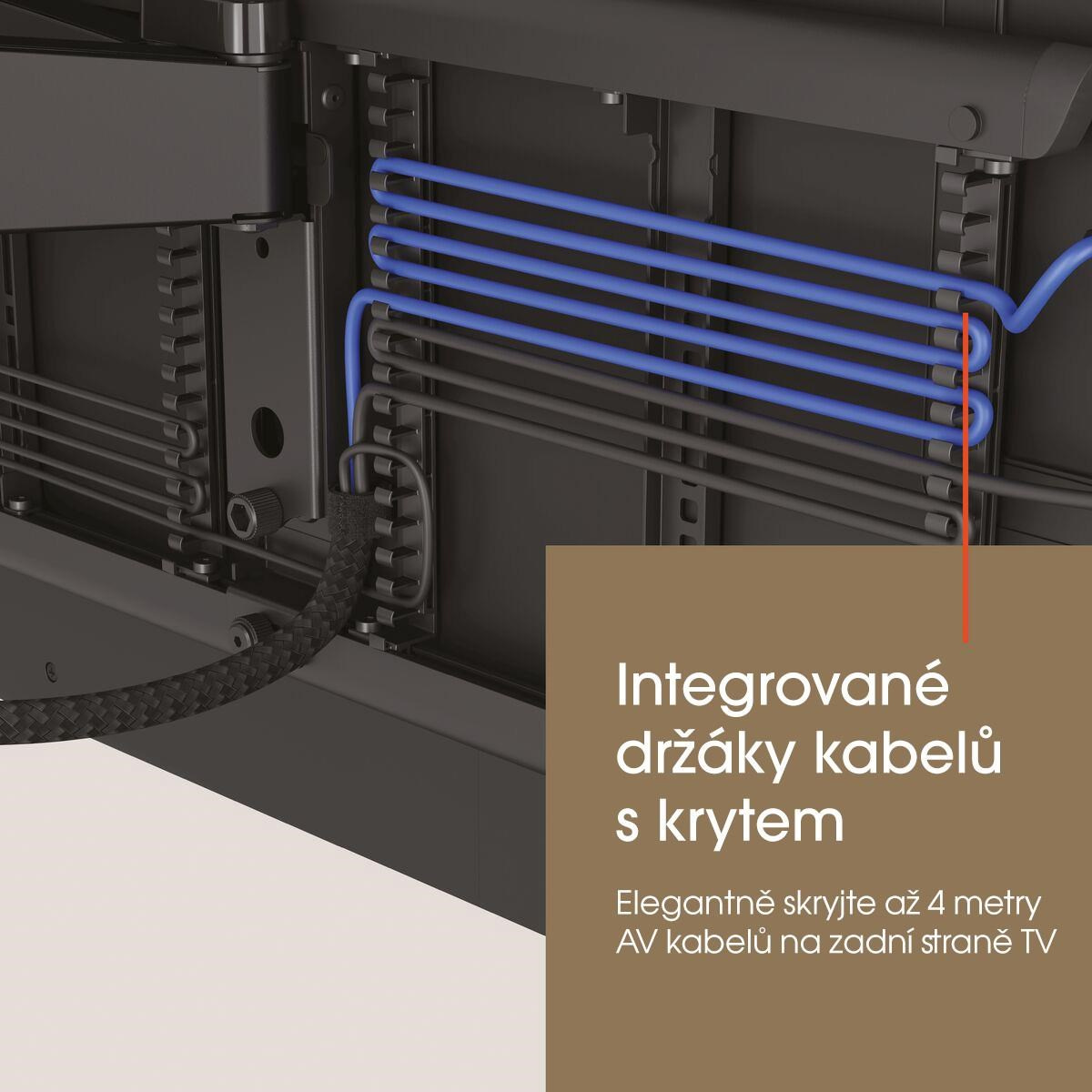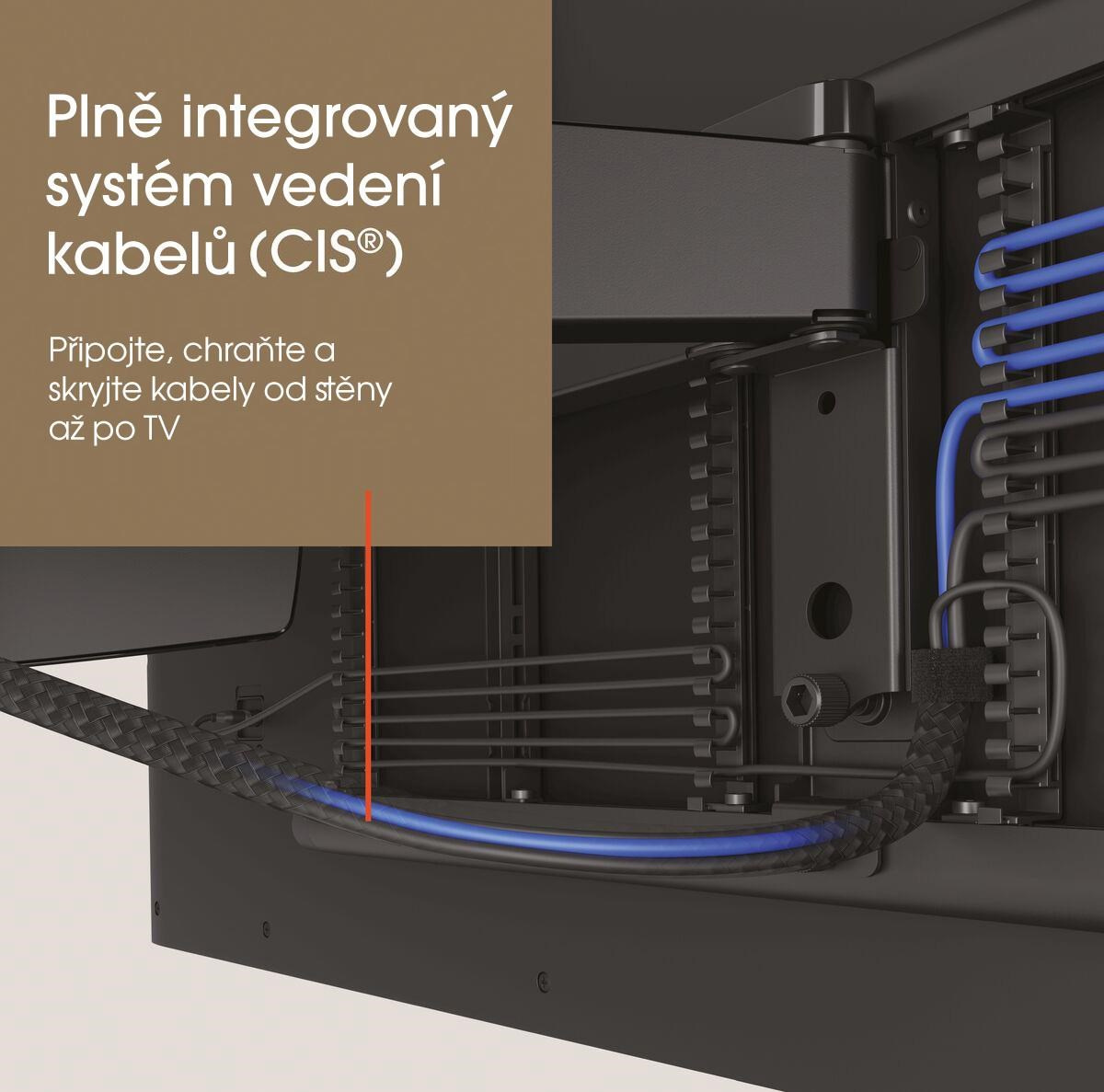 • Plne integrovaný systém vedenia káblov (CIS®) - Pripojte, chráňte a skryte káble od steny až po televízor