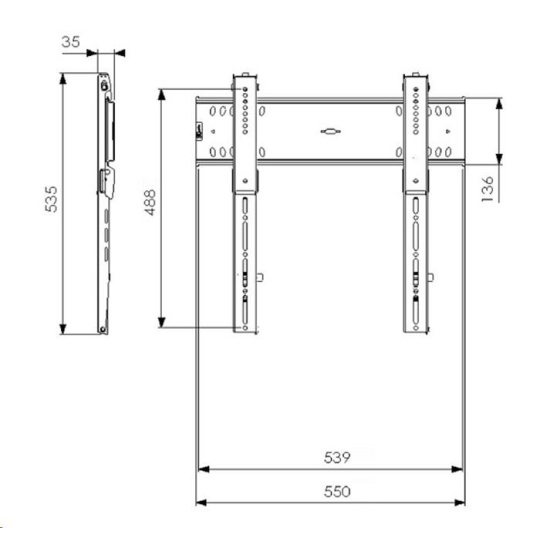 - Oválne otvory pre rýchle nastavenie vodorovnej roviny aj pri nepresnom vyvŕtaní otvorov