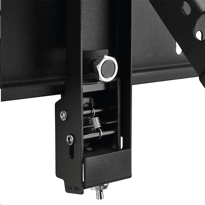 - Integrovaný zámok zabraňujúci neoprávnenej manipulácii, stačí ho zatlačiť a držiak sa uzamkne. Nie je potrebné spúšťať žiadne uzamykacie lišty za displejom