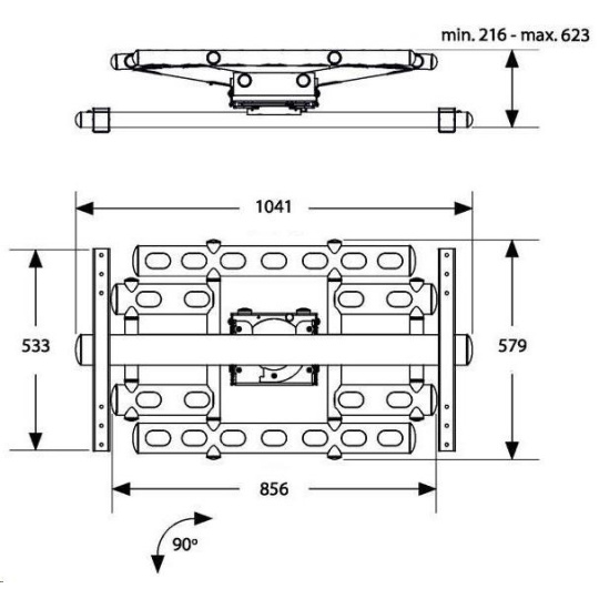 - možnosť vytiahnutia televízora až 62 cm od steny