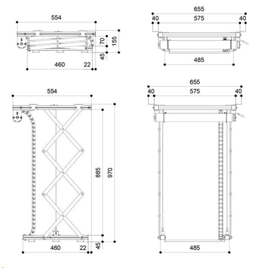 • Rozmery uzavretého výťahu 575 x 155 x 554 mm (Š x V x H)