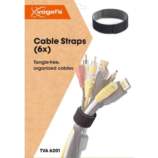 V ideálnom prípade by ste mali káble zviazať dohromady a viesť ich skryto pred zrakmi. Spoločnosť Vogel's k tomu ponúka rad praktických riešení. Pomocou týchto západiek s suchým zipsom môžete káble pevne a bezpečne zviazať dohromady. Sada západiek TVA 6201 sa skladá zo šiestich západiek dlhých 30 cm a širokých 2 cm.