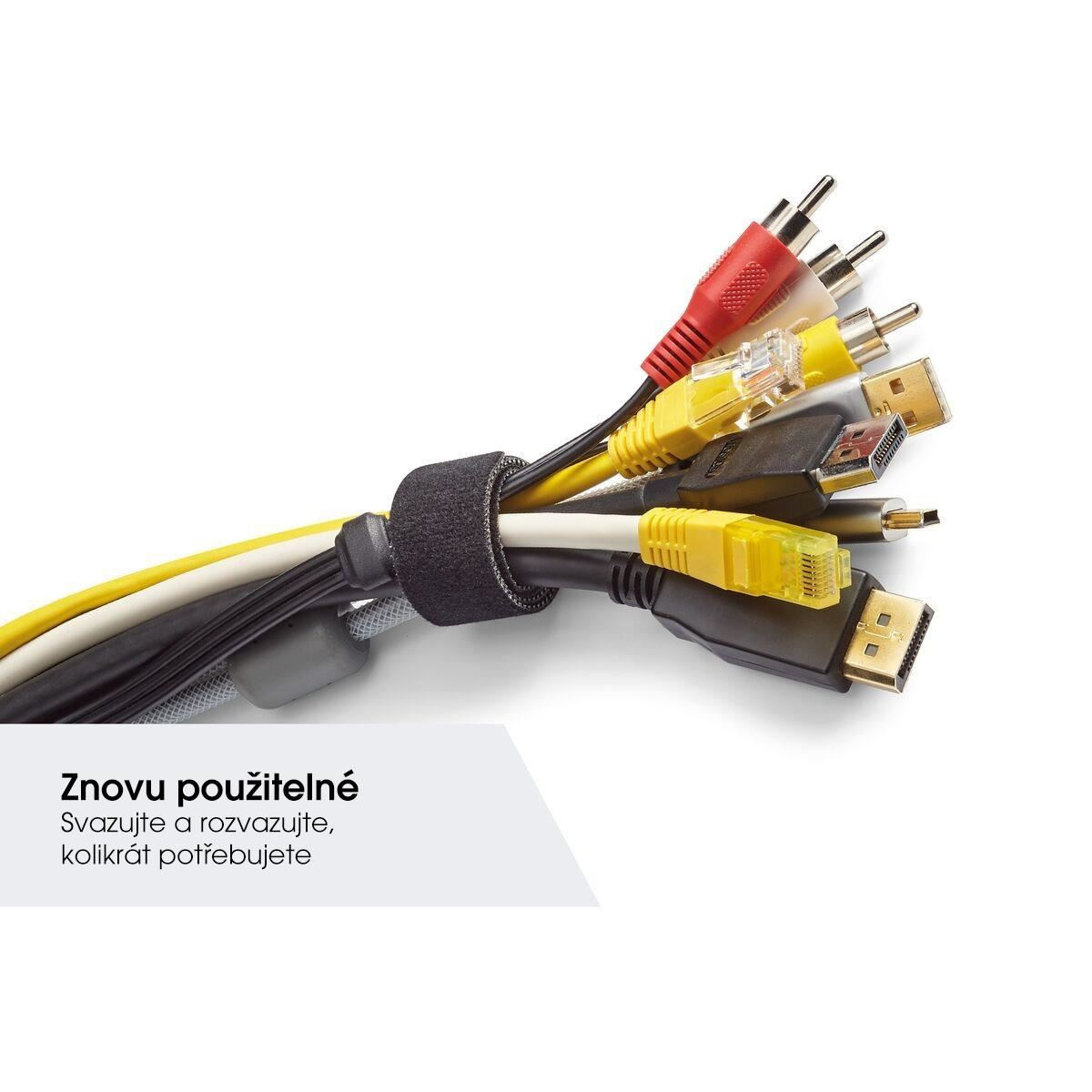 Pretože sú tieto káblové západky vybavené suchým zipsom, ľahko sa používajú a to opakovane. Nie je problém pridávať, odoberať, meniť káble alebo ich úplne reorganizovať. Západky sú vždy pripravené na okamžité použitie, spoj je pevný a časom sa neuvoľňuje.