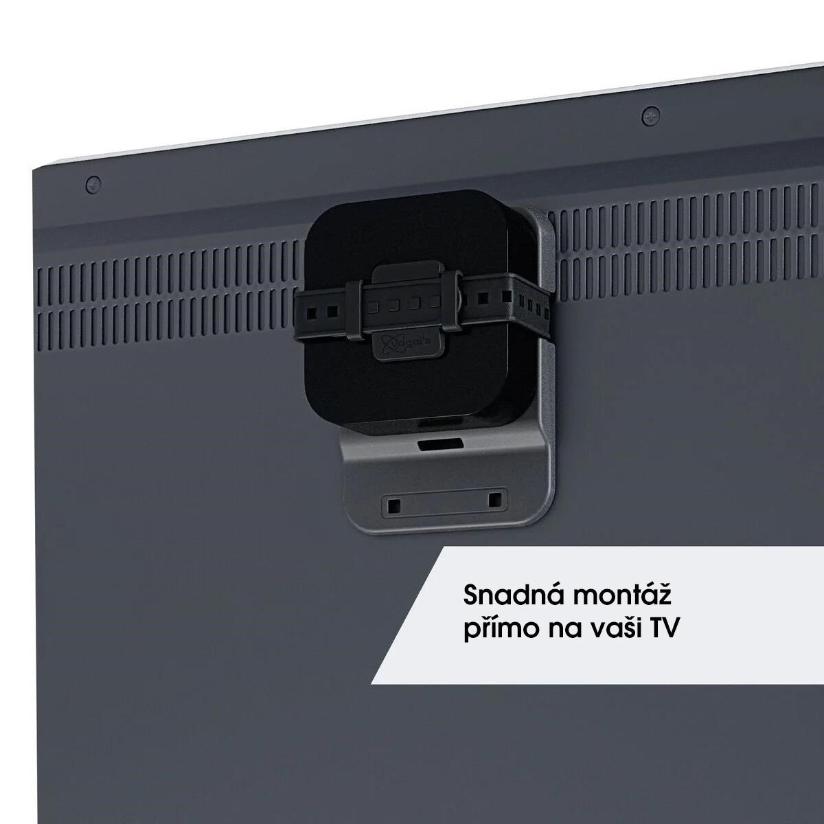 Držiak media boxu je možné ľahko nainštalovať za televízor troma spôsobmi: priamo na televízor, na nástenný držiak televízora alebo na stenu. Je vyrobený z robustného ABS s pružným univerzálnym remienkom, neobsahuje žiadne kovové časti, a preto nijako neovplyvňuje bezdrôtový prenos signálu.