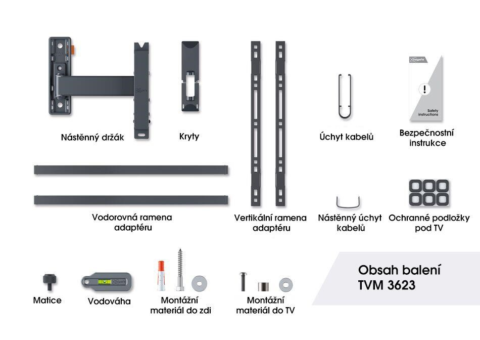 Chcete si vychutnať svoj veľký plochý televízor bez akýchkoľvek starostí. S držiakom TVM 3623 radu COMFORT Full-Motion TV to zvládnete. Váš televízor bude na stene upevnený štýlovo a bezpečne. Nástenný držiak je špeciálne navrhnutý pre intenzívne používanie s ohľadom na rodiny s deťmi. Nastavenie dokonalého pozorovacieho uhla? Žiadny problém. Televízor môžete natočiť až o 120° (záleží na šírke TV) a nakloniť až o 20°. Nástenný držiak je vhodný pre televízory s uhlopriečkou 40 až 77 palcov a hmotnosťou do 35 kg.