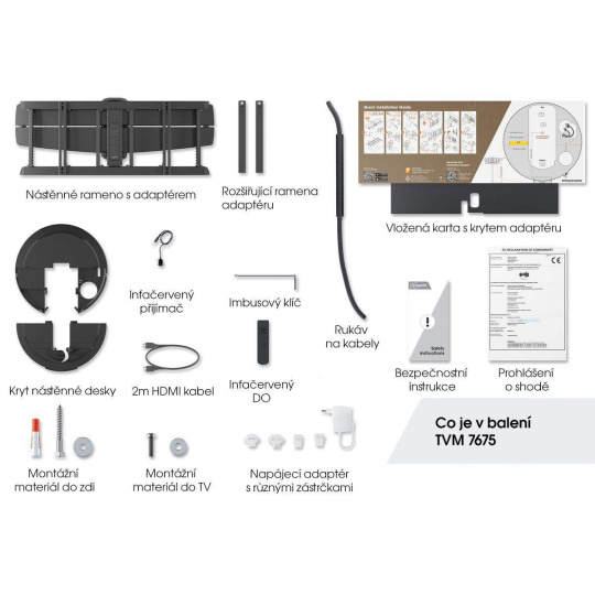 • štíhly 4,5 metrový HDMI kábel (pri použití držiaka MotionMount v kombinácii s TV s externým prijímačom napriklad Samsung s One Connect Box)